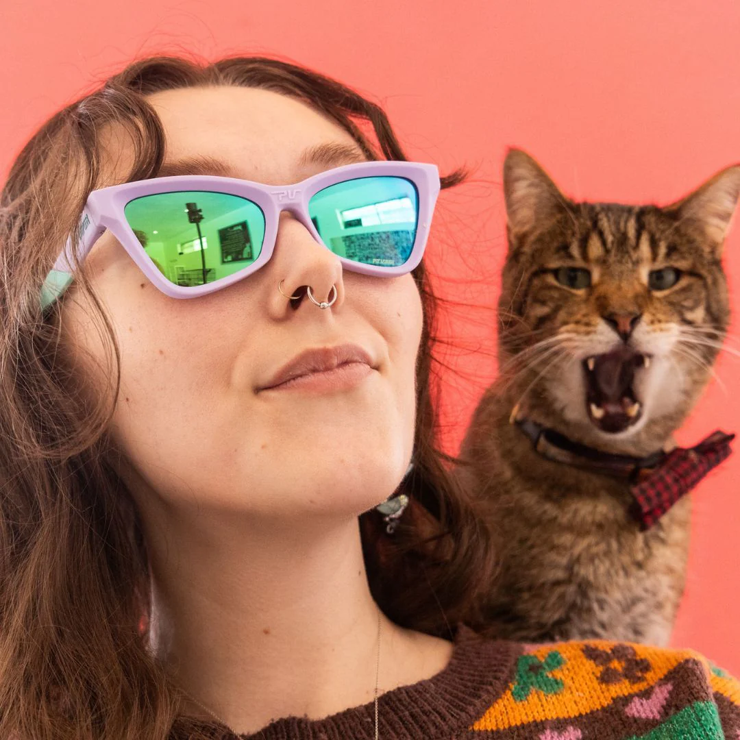Land on your feet in The Clawdia, the cat-eye Pit Viper made for sports. Rubberized touchpoints, lightweight frame, and Dual Lens Technology™ make these the purrrfect sunglasses for hissing at your brother, knocking sh*t off the table, or whatever sport you choose.
